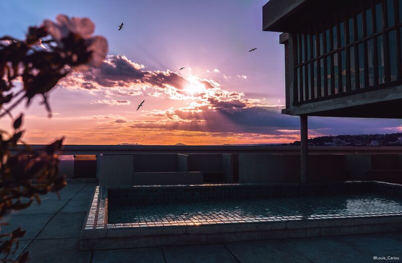 Au cœur  de la « Cité Radieuse », se cache  cette  surprenante adresse gastronome « le ventre de l’architecte ». L’ambiance  y est particulière et  assez unique : la vue magnifique sur les îles du Frioul, par cette  terrasse qui ressemble à une coursive de paquebot en attente de haute mer (pont en bois, chaise en fer des années 30, tables dans l’esprit « compas, » de Jean Prouvé, grande baie vitrée).